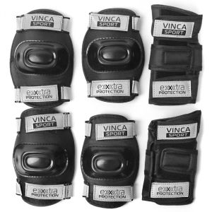 Комплект защиты детский VINCA SPORT VP 38 (наколенники, налокотники, наладонники), черный со светоотр, размеры S,M